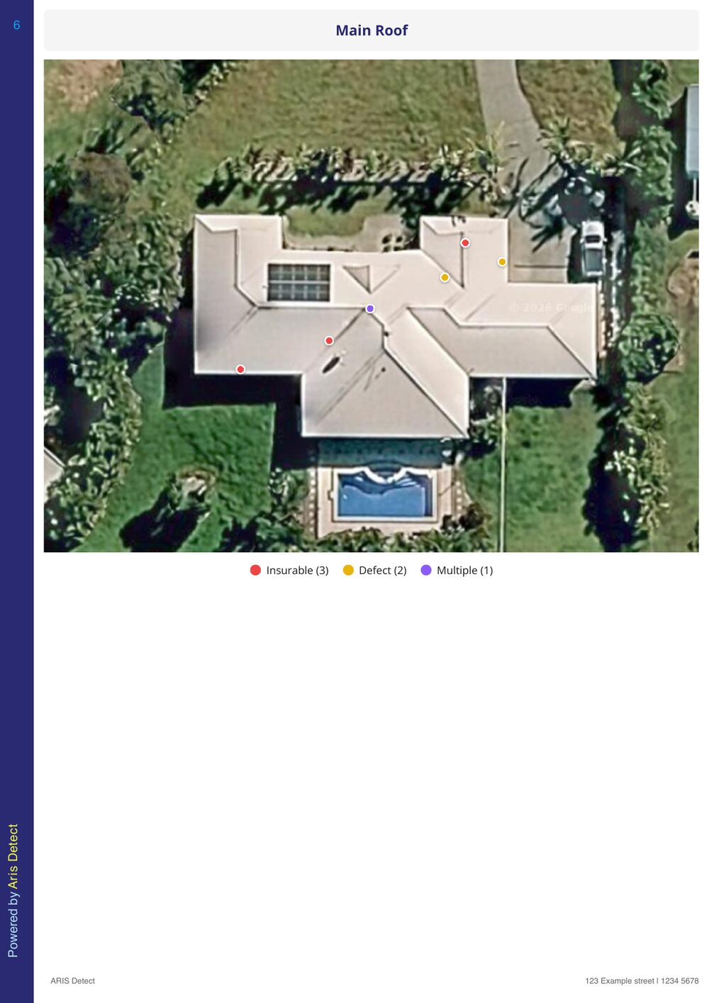 Upload drone or handheld imagery. ARIS Detect identifies damage, maps every finding, and generates insurer-ready reports in minutes.
